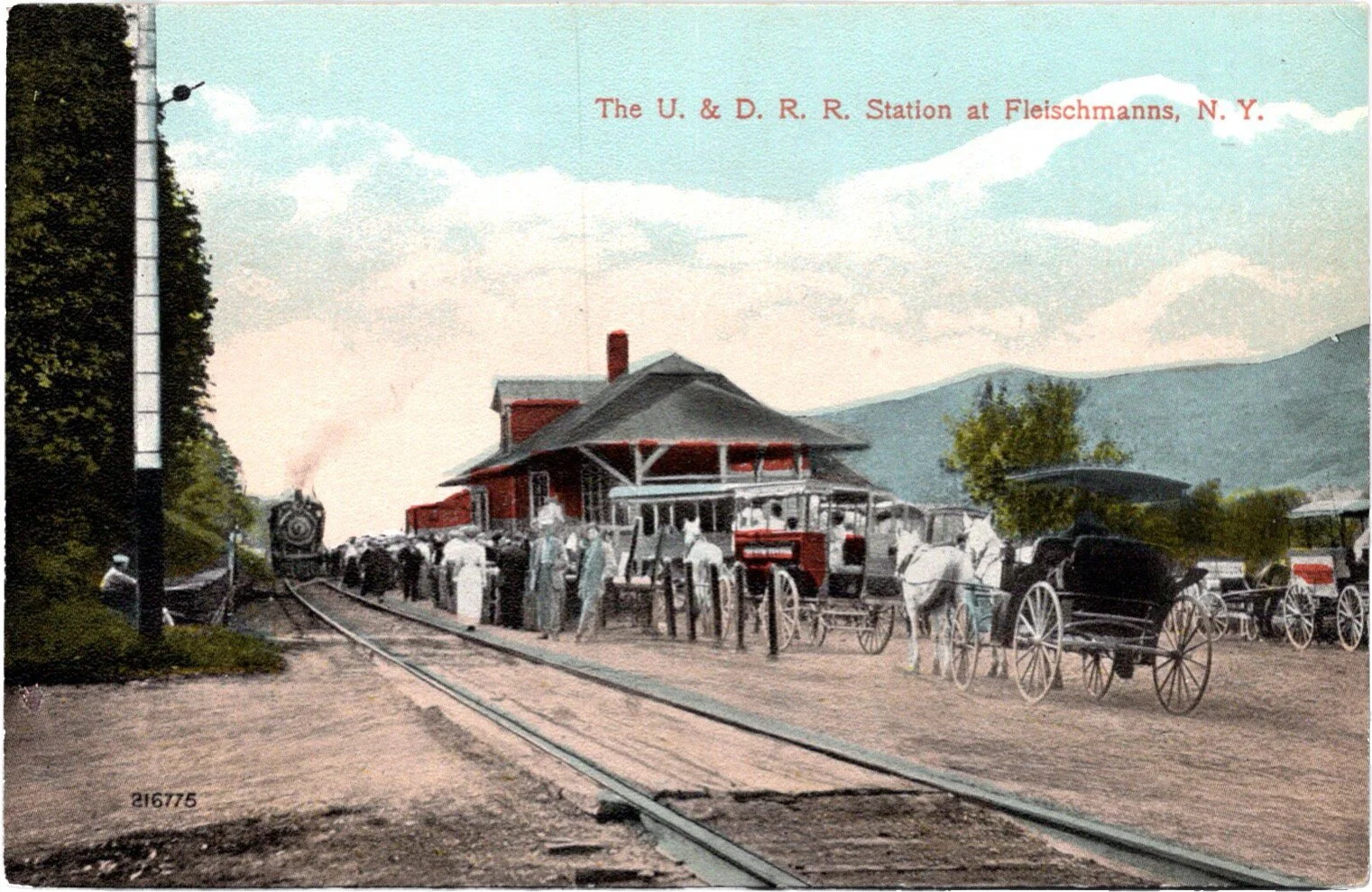 In the 1870s, a railroad was built from Kingston and was eventually known as the Ulster & Delaware Railroad. The new mode of transportation suddenly opened the area to visitors from New York City, and from farther away. A trip that had taken many difficult hours (or days) on the rough roads suddenly became a matter of hours.