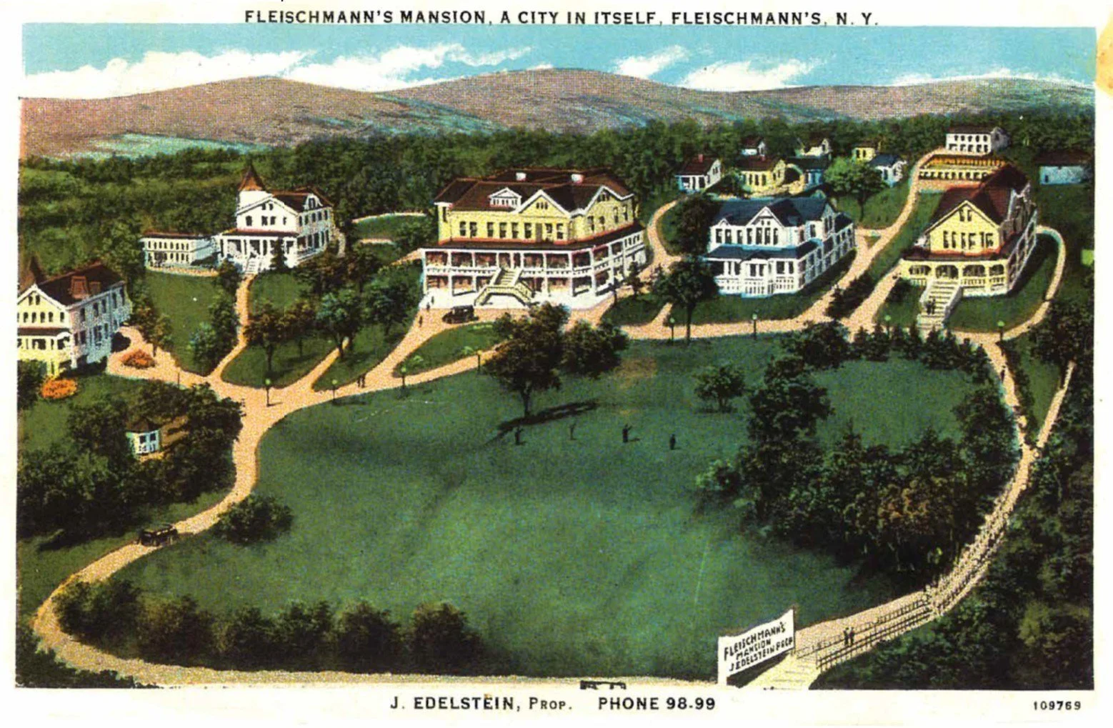 Postcards and paintings from the era show much colorful activity — boating, an amusement park, and the hotels in their prime. While the Hotel Switzerland is long gone, the St. Regis hotel is still there, actually outlasting the lake it was built to grace. When the Fleischmann family left the area for good in 1913, they donated their park property on Wagner Avenue, where baseball and other summer pastimes entertained throngs of visitors (some reports state that attendance at the Mountain Athletic Club games could hit 5,000 people), to the village. In grateful recognition, the expanded village renamed itself Fleischmanns in their honor.